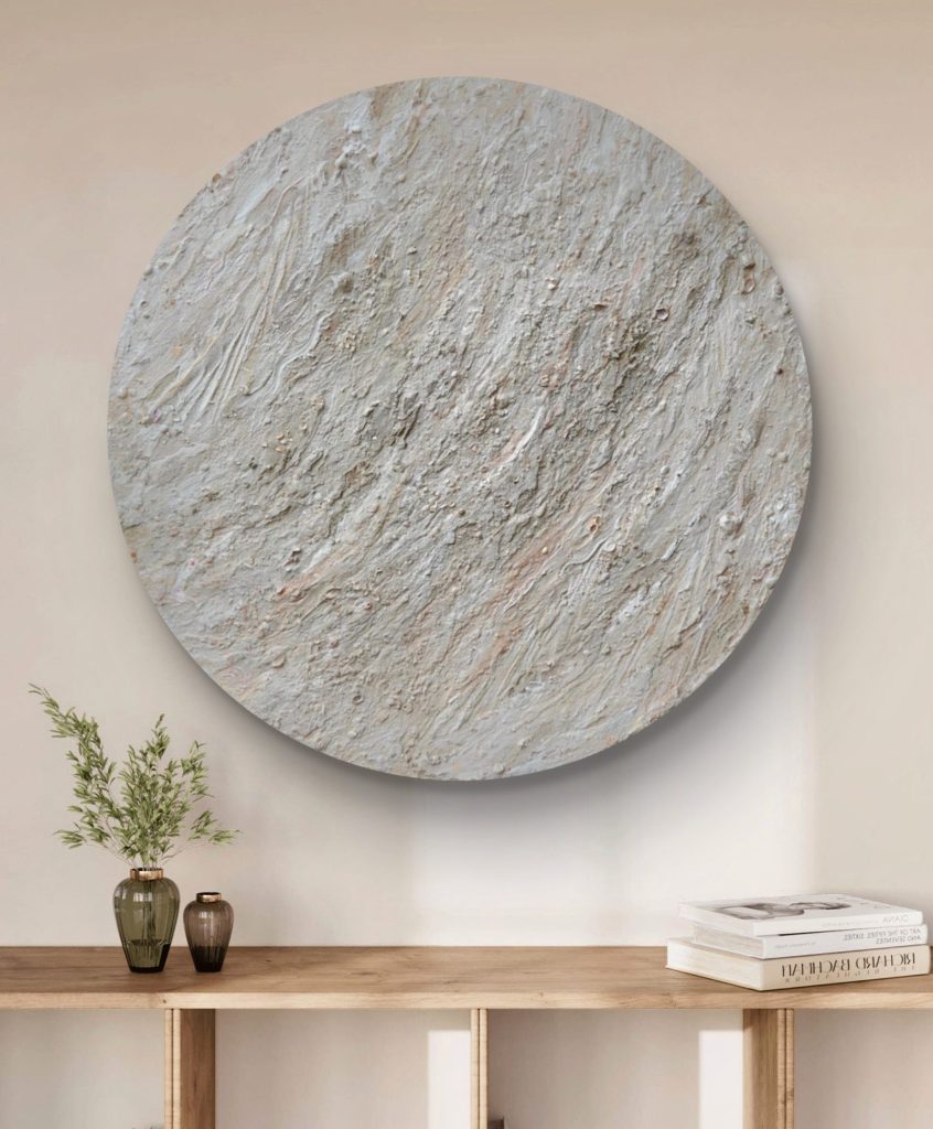 Geinspireerd door de schelp, die met haar harde buitenkant en zachte mysterieuze binnenkant de dualiteit van kracht & kwetsbaarheid symboliseert. Beschermd en toch gevoeig, krachtig en tegelijkertijd kwetsbaar. Gevormd door zand, schelpen, structuur en zachte roze tinten.
