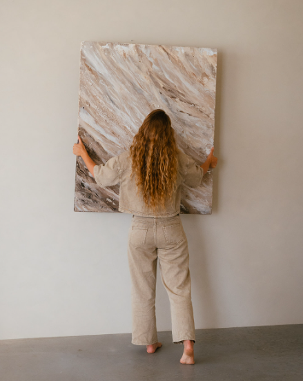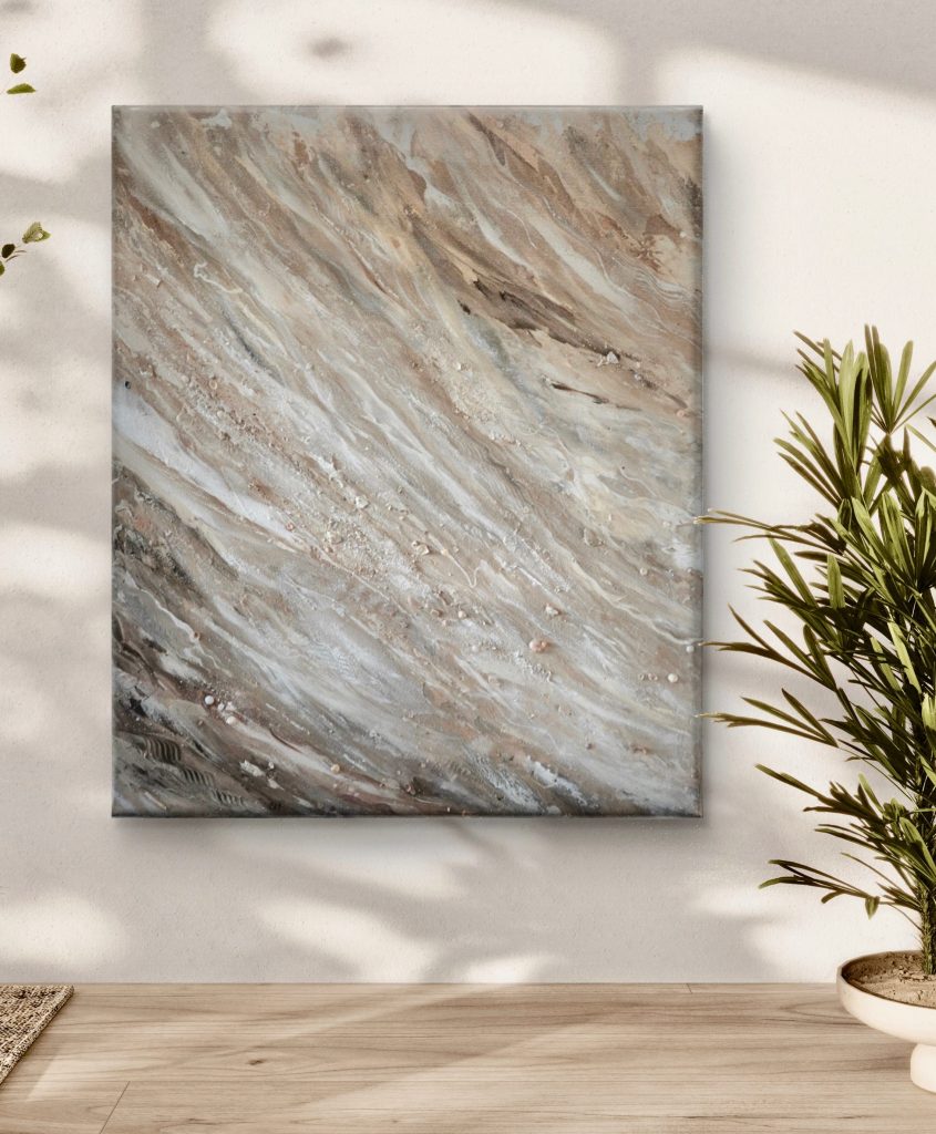 Elk werk dat ik creëer is uniek en ontstaat in verbinding met jou, de ruimte en de natuur die mij voortdurend inspireert. Mijn werken bewegen mee met de energie van het interieur en brengen een gevoel van rust, balans en flow. Het stroomt mee in de flow van de ruimte en geeft er tegelijkertijd iets authentieks toe.
