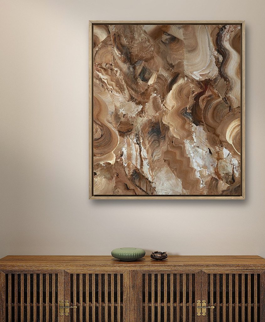 - Het is mogelijk het schilderij in te laten lijsten. De handgemaakte houten lijst is gemaakt van Ayous hout. Ayous heeft een prachtige lichtbruine kleur en bevat weinig noesten (+50 euro).