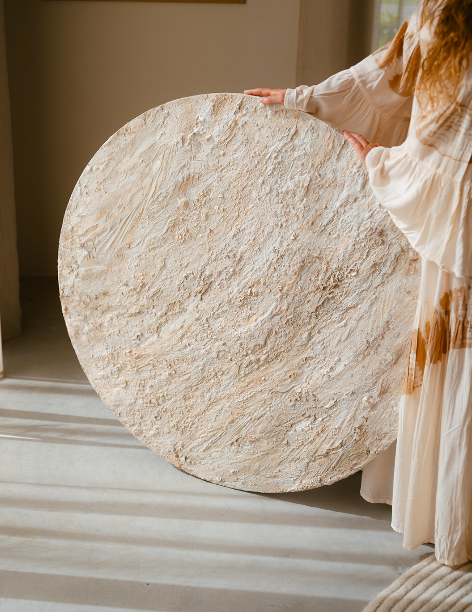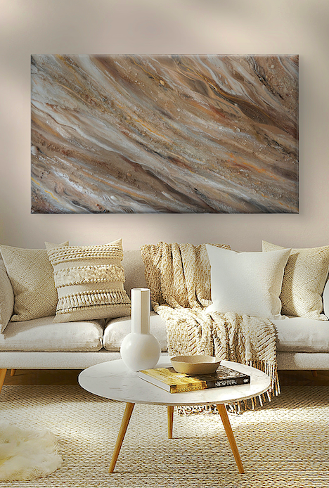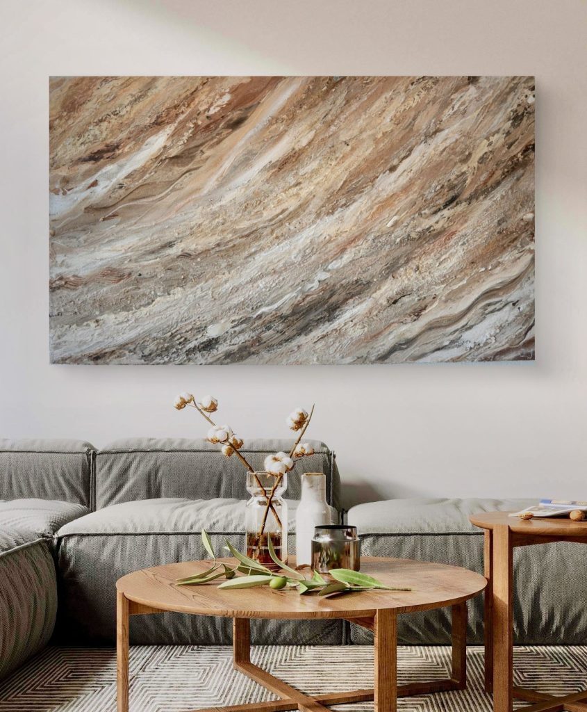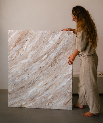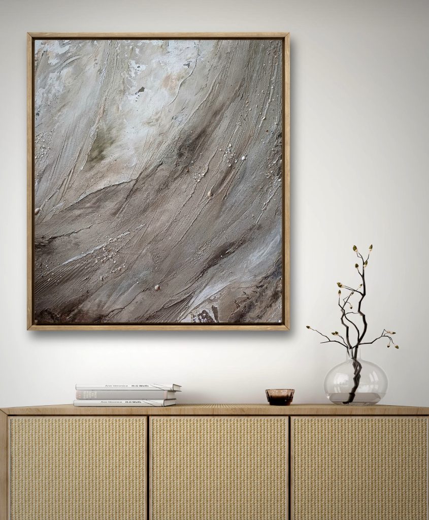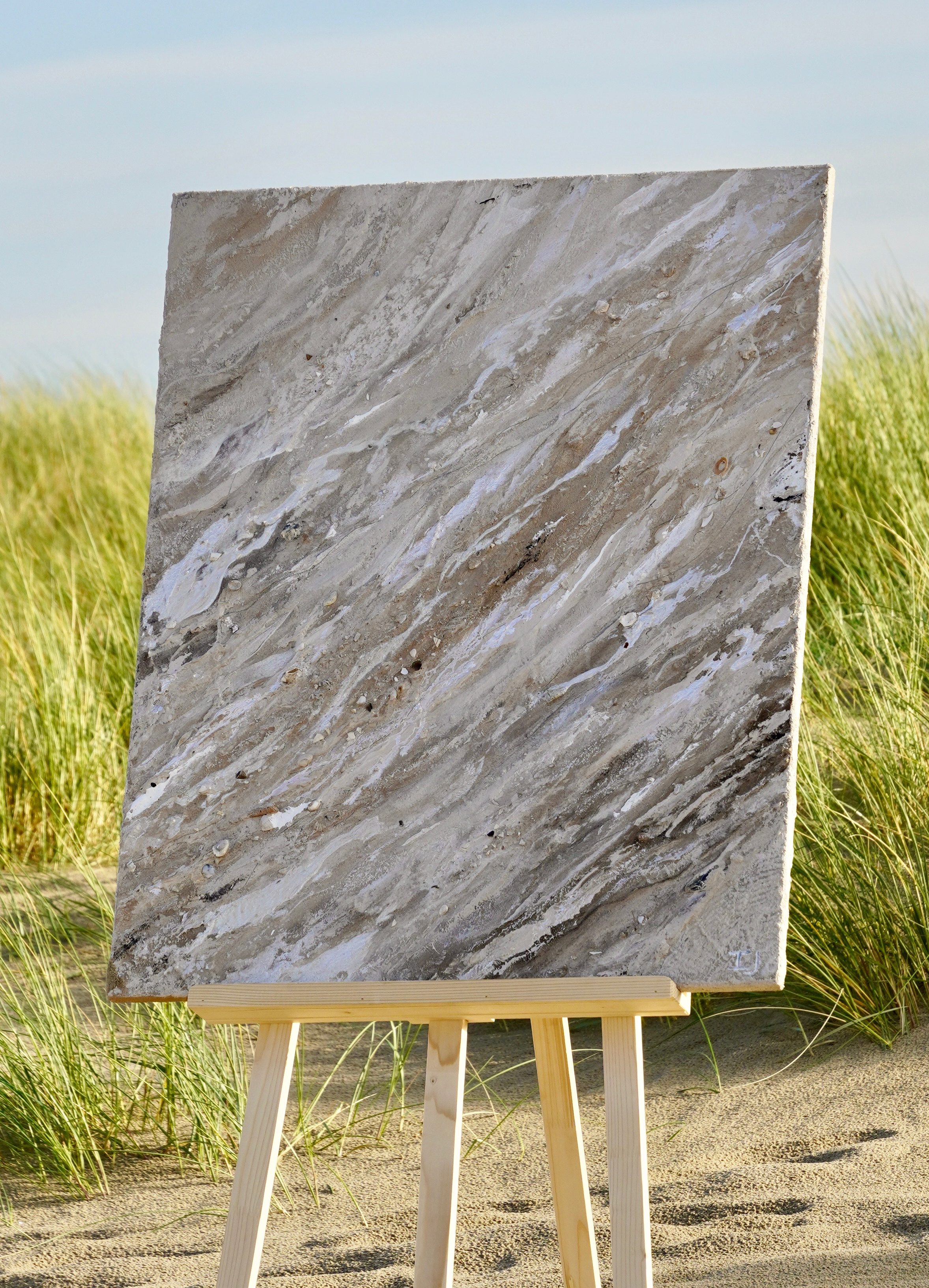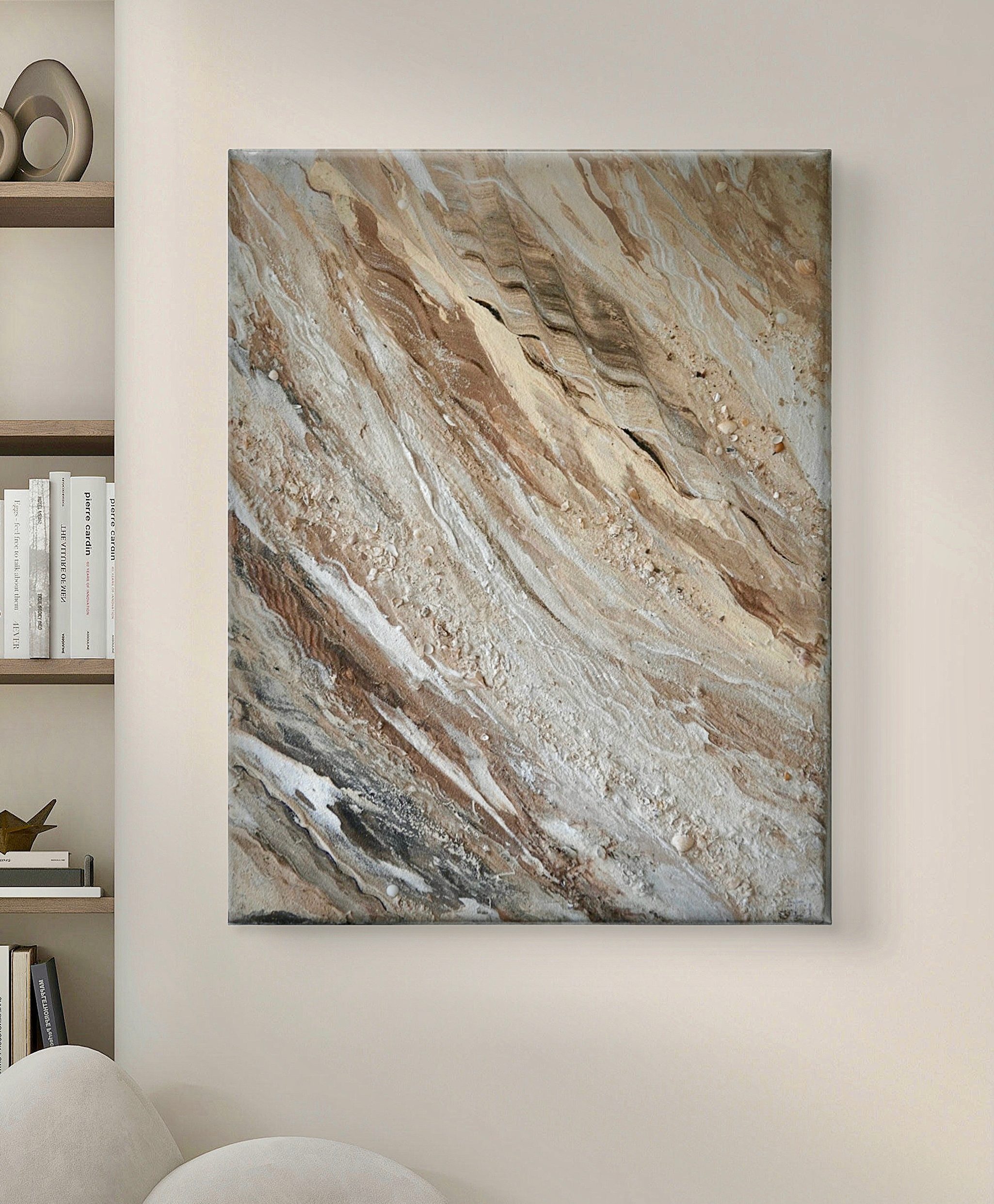 De schilderijen uit de Pure Shores serie ademen strand, zand, schelpen en wind. In zachte aardse tinten brengen ze de stilte tegelijkertijd het levendigheid van de kust tot leven. Door elk schilderij stroomt een natuurlijke flow, alsof de wind er zachtjes doorheen waait. De kleuren brengen rust, terwijl de details verrassingen creëren. Zoals het strand zelf, gelaagd, natuurlijk, vol structuren en details voor wie de tijd neemt om te kijken en te ontdekken ..