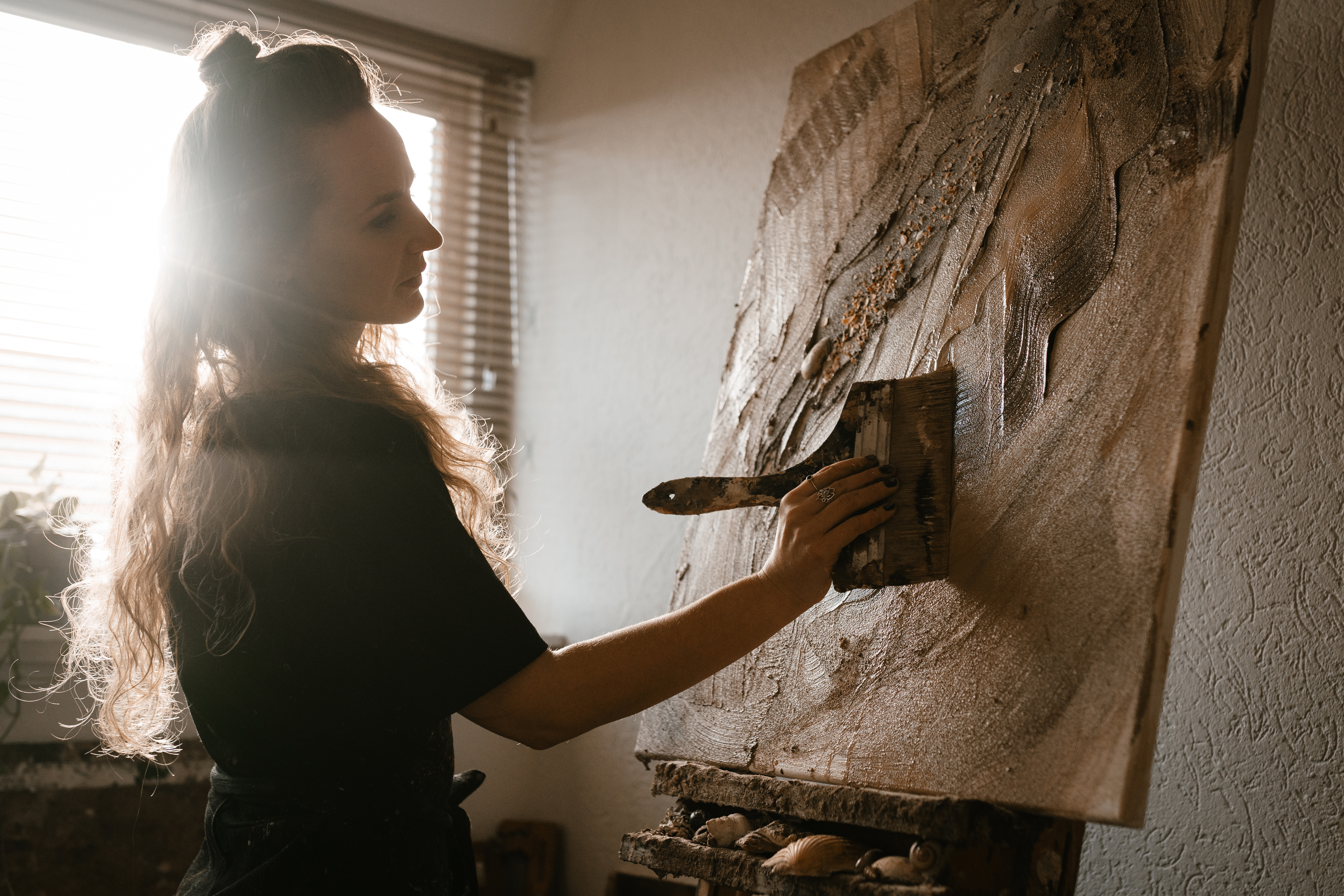 Welkom in mijn wereld van zand, zee & flow.. Ik ben Ilse en mijn reis als kunstenaar is een voortdurende ontdekkingstocht, net als mijn schilderijen. Mijn werk ontstaat vanuit overgave, waar controle stopt en beweging begint. Met zand en schelpen leg ik de ontmoeting vast tussen het zichtbare en het onzichtbare. Elk werk is een verstild moment van die stroming.
