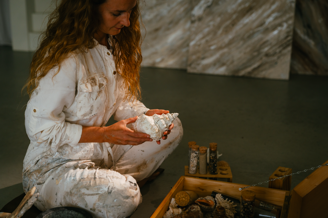 Mijn werk ontstaat vanuit overgave, waar controle stopt en beweging begint. Met zand en schelpen leg ik de ontmoeting vast tussen het zichtbare en het onzichtbare. Elk werk is een verstild moment van die stroming.