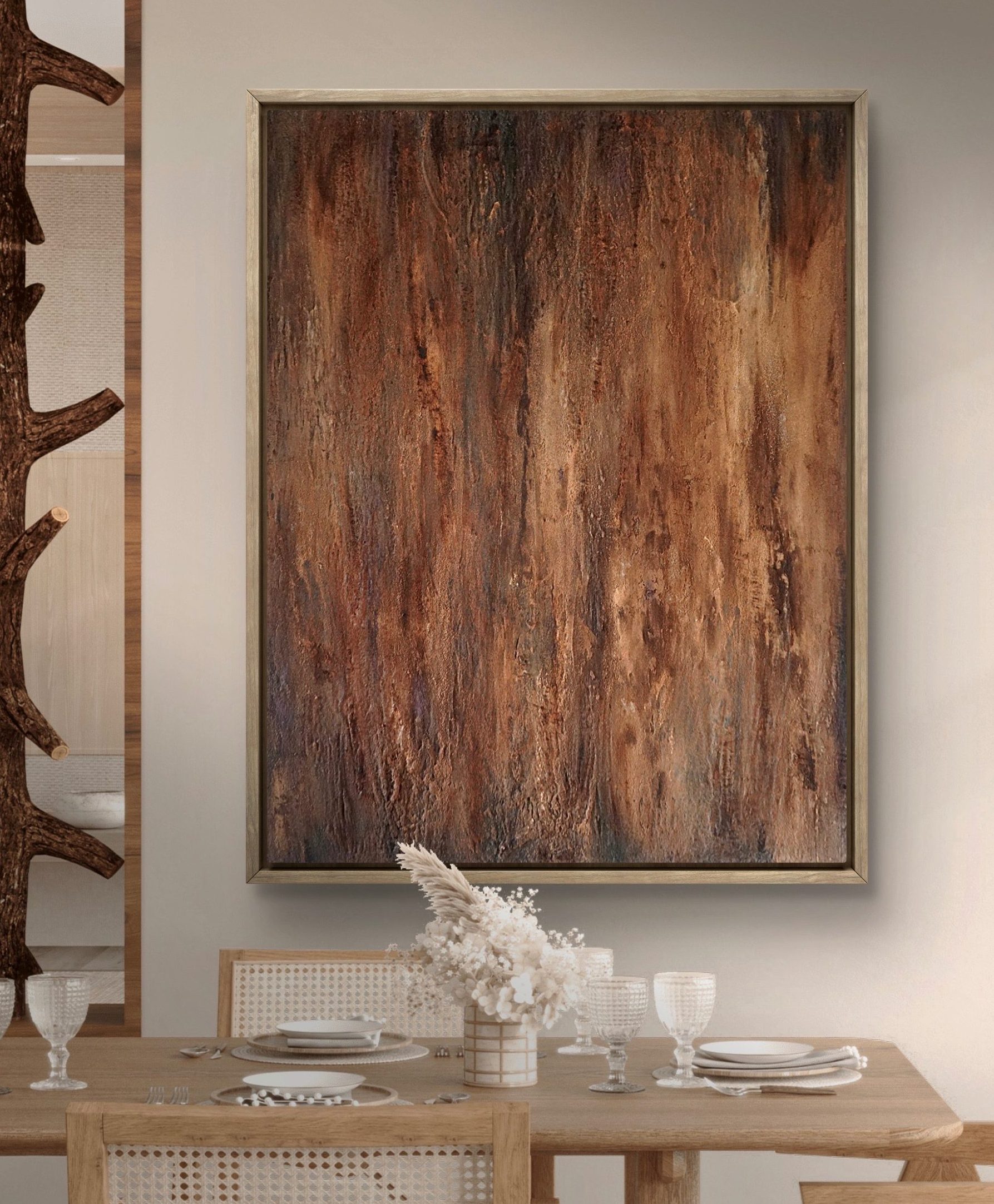 - Het is mogelijk het schilderij in te laten lijsten. De houten lijst is gemaakt van Ayous hout. Ayous heeft een prachtige lichtbruine kleur en bevat weinig noesten. Dit is zeer stevig hout, maar toch laag in gewicht. De lijst zorgt voor een stijlvolle uitstraling van het kunstwerk