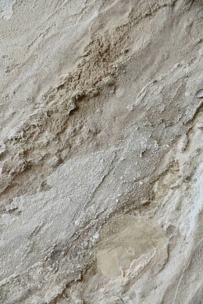 - Tijdens wandelingen langs het strand verzamelde ik zand, schelpen en stenen, ze vormen de basis van het kunstwerk.