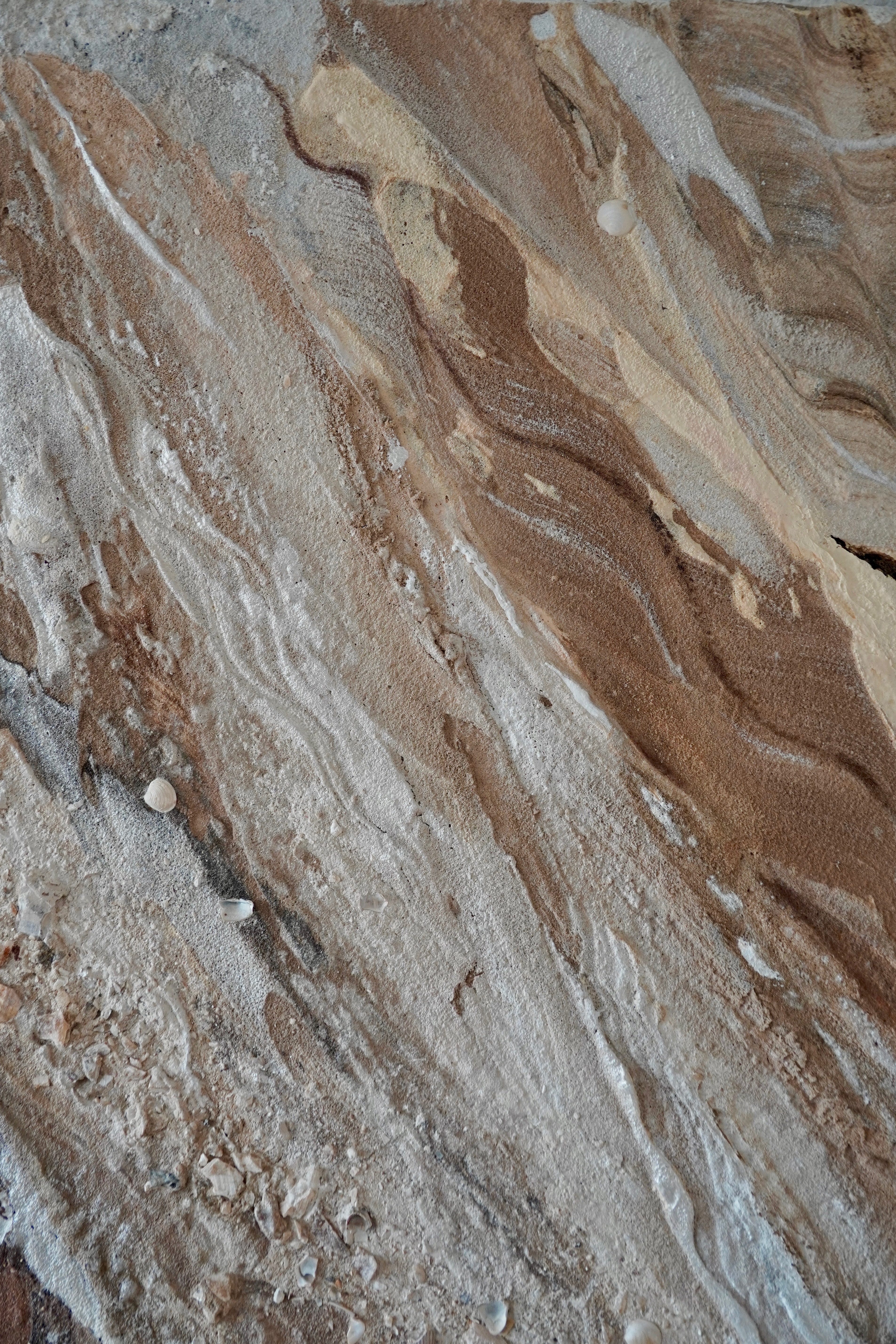- Materiaal: zand, acrylverf, pure pigmenten, pastelkrijt, oliepastel, schelpjes & stenen
