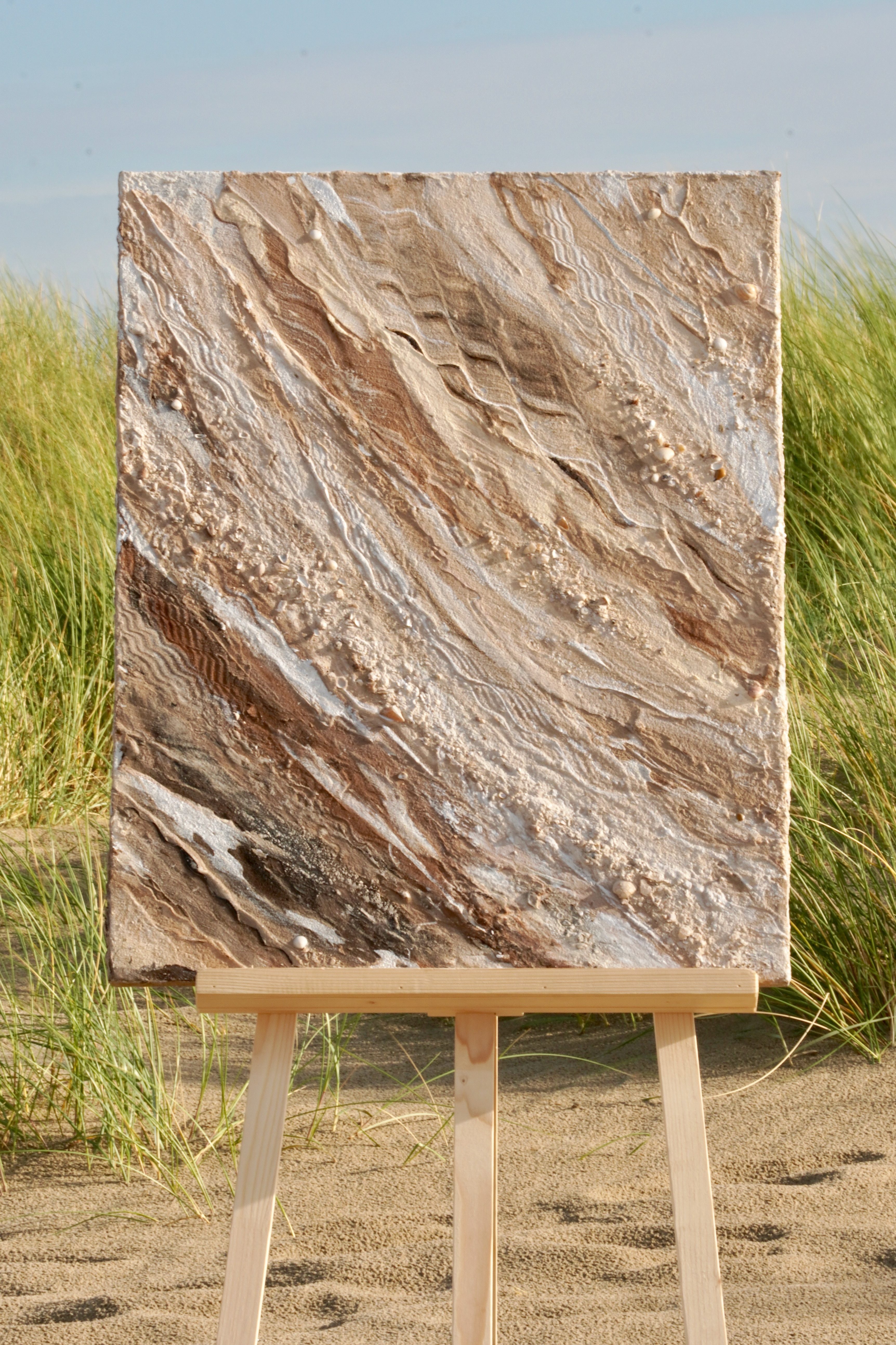 - Verzameld langs de kust ~ zand, schelpen en steen vormen de essentie van dit werk